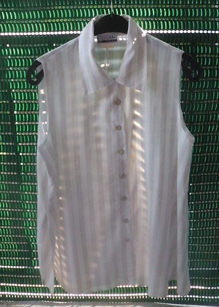 Chemisier sans manche rayé blanc-marron clair SM Fiorella Taille 38