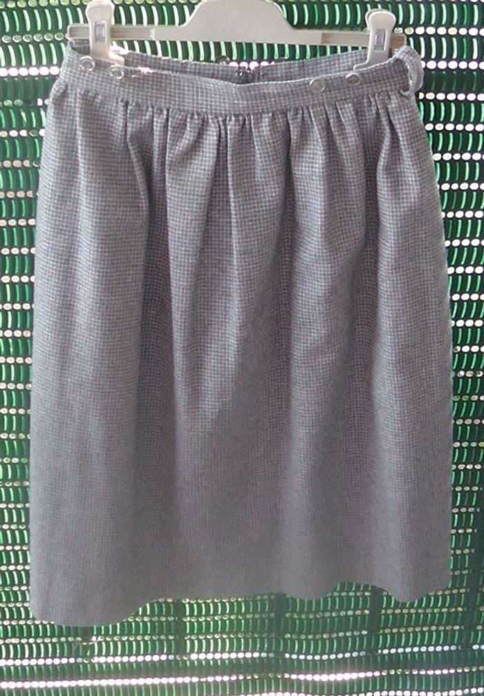 Jupe grise "pied de poule", tissu épais, avec boutons pour possibilité de mettre des bretelles. taille 36