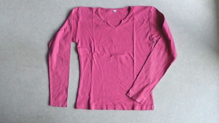 Maillot manches longues, col en V, uni rose taille 14 ans