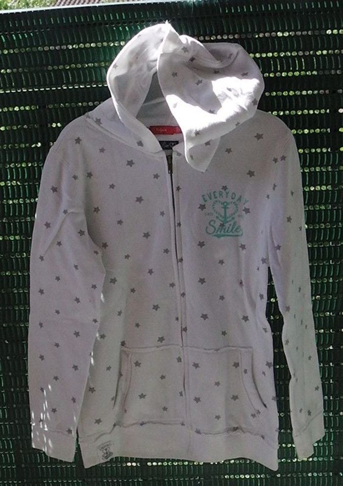 Veste à capuche blanche avec des étoiles grises taille 14 ans