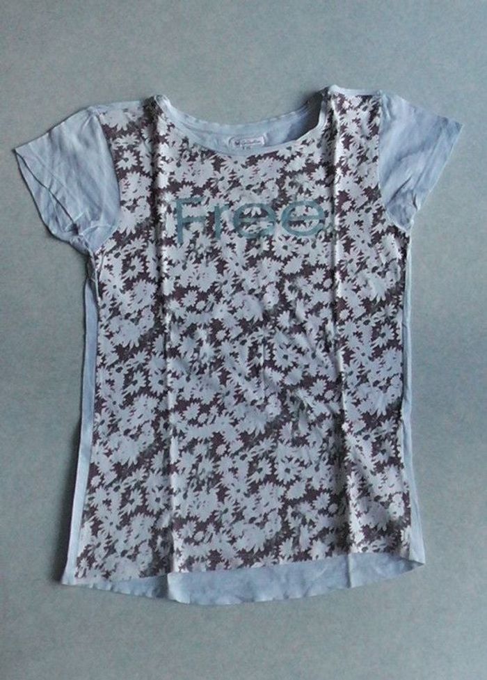 Maillot manches courtes, de marque U Collection bleu ciel, avec imprimé "Marguerites" taille 14 ans