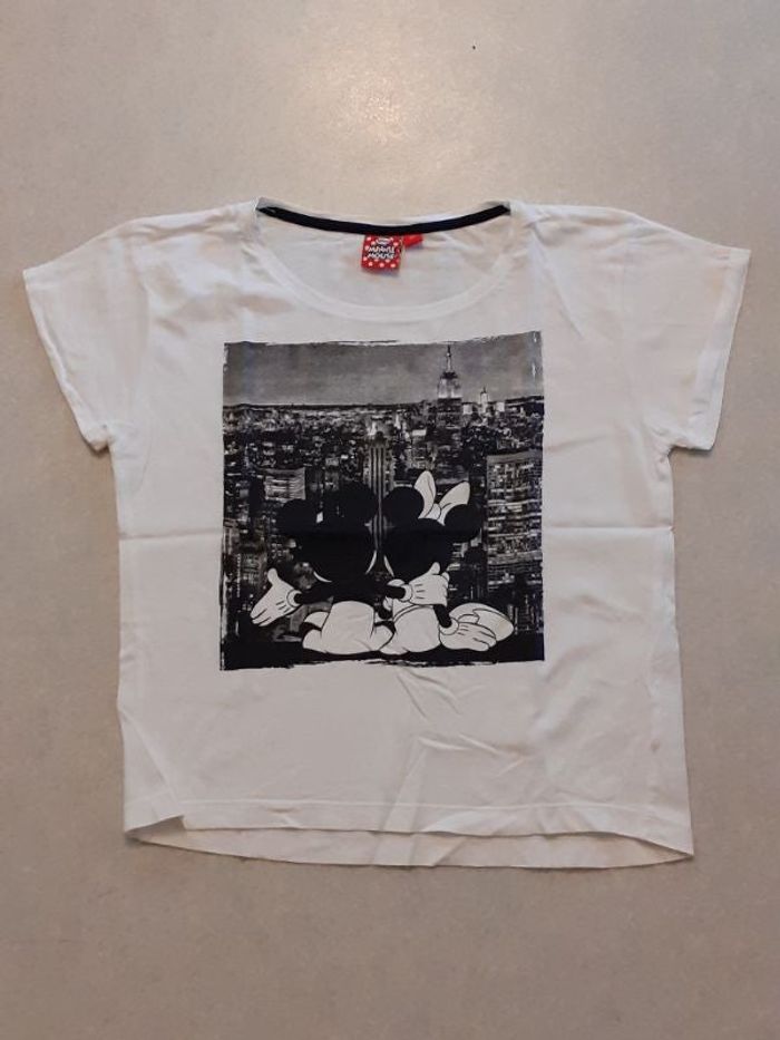 T-shirt de marque Disney maillot manches courtes, blanc imprimé Mickey Minnie Taille 16 ans