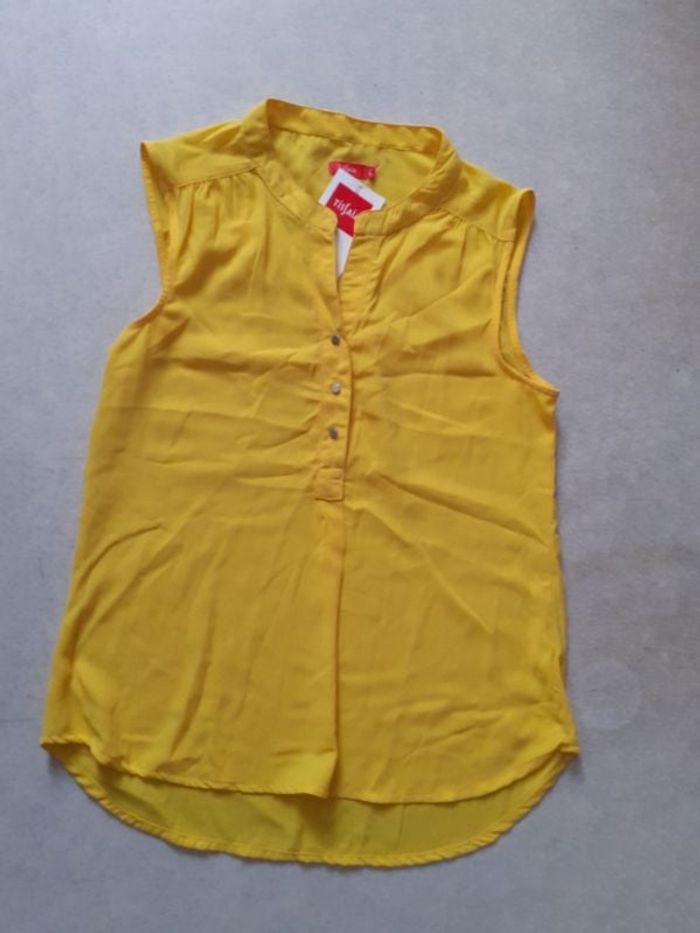 Chemisier sans manche jaune uni boutonnage sur le devant de marque Tissaia taille 40 NEUF