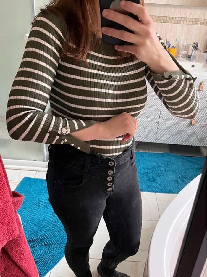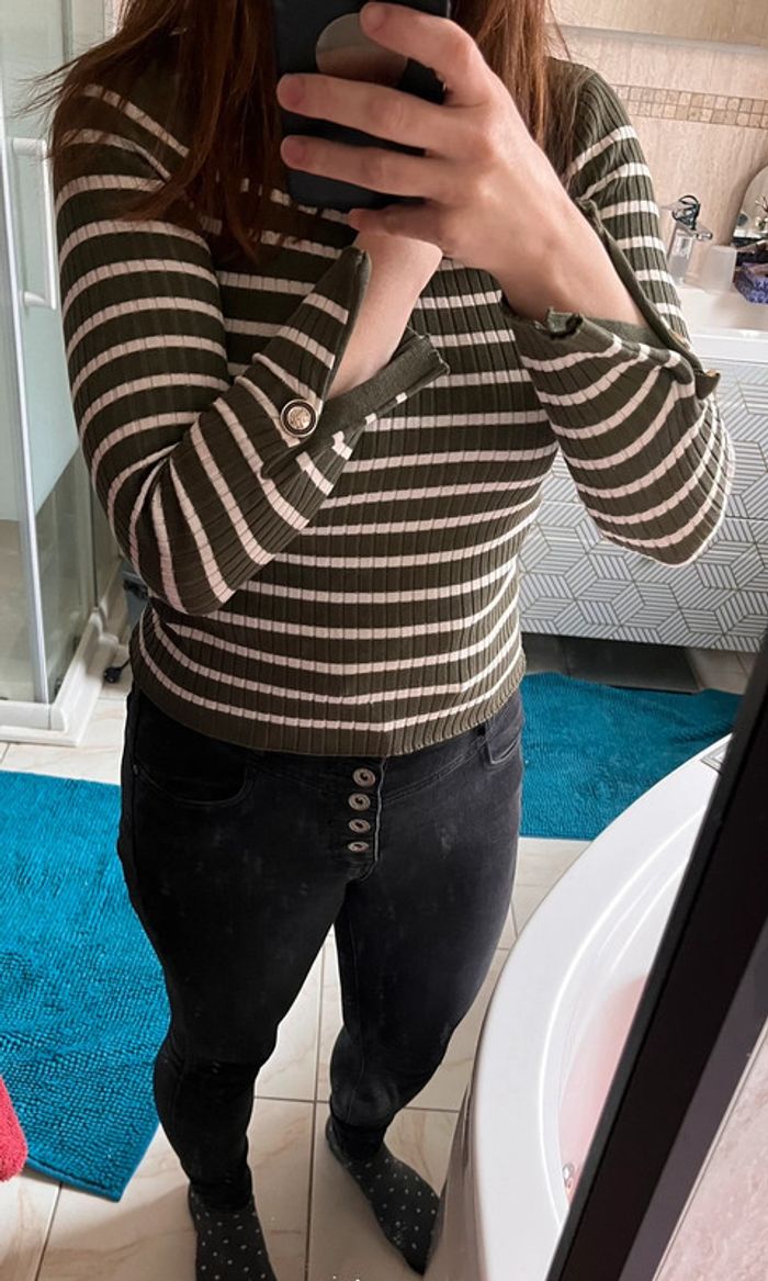 Pull léger femme, neuf sans étiquettes (juste lavé et essayé). Trop petit pour moi même si noté TU il est pour la petite taille (S) Jolie couleur kaki, détails manches ouvertes et boutons #jp_01femmes