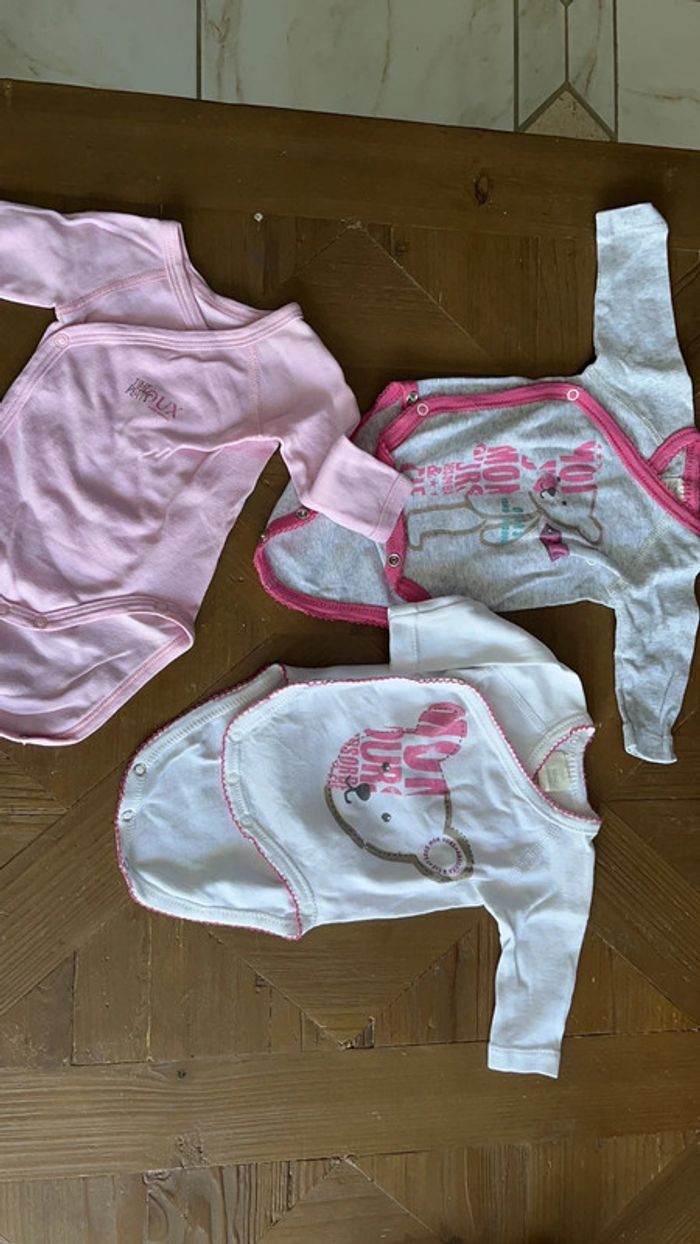Lot de 3 bodies naissance 50 cm Petit bateau le rose Absorba les autres