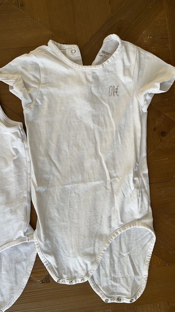 Deux bodies orchestra blanc Quelques petites tâches #jp_01fille24mois #jp_01fille36mois