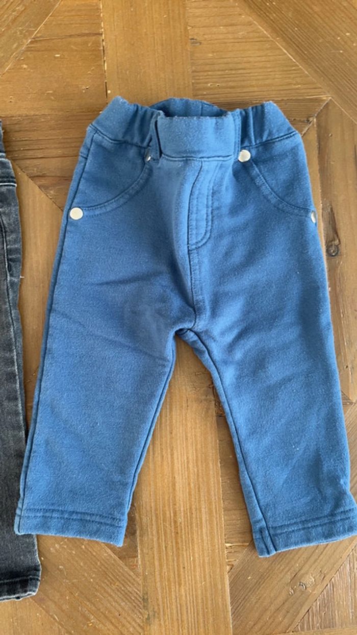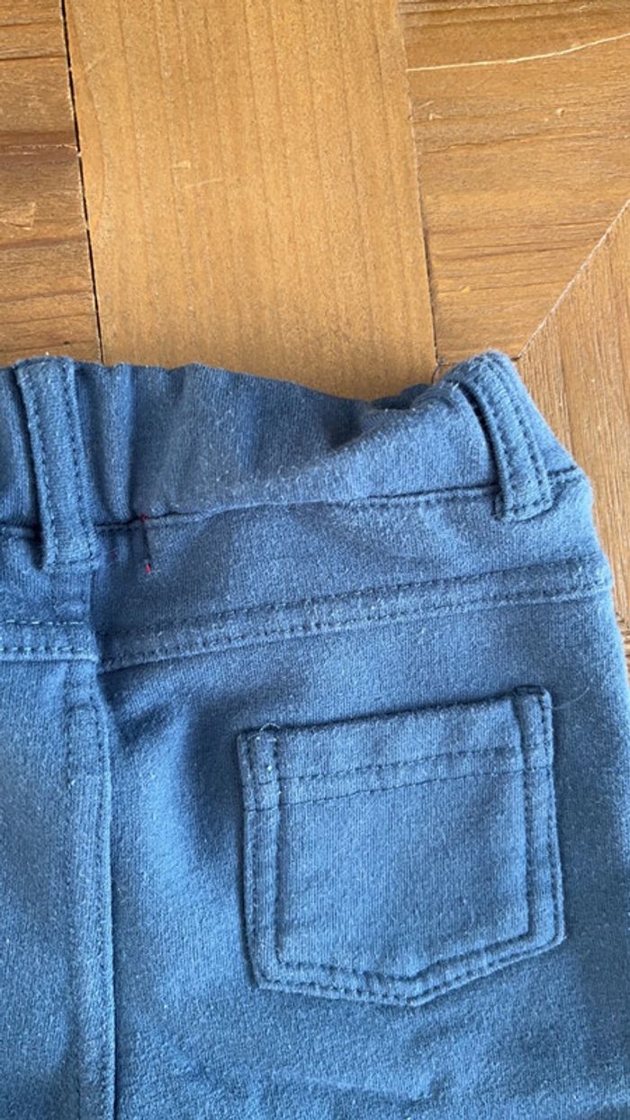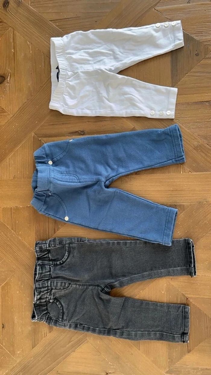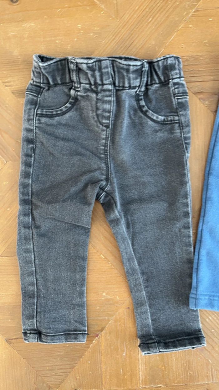 Lot de 3 pantalons fille : - Jean noir kiabi : porté une fois - jegging bleu : quelques peluches, élastiques qui se retourne à la taille - legging court blanc in extenso 68 cm #jp_01fille6mois #jp_01fille9mois