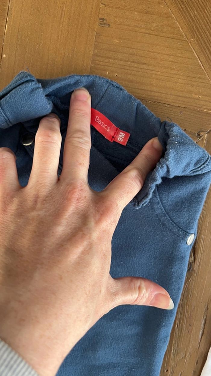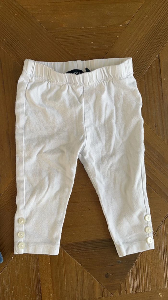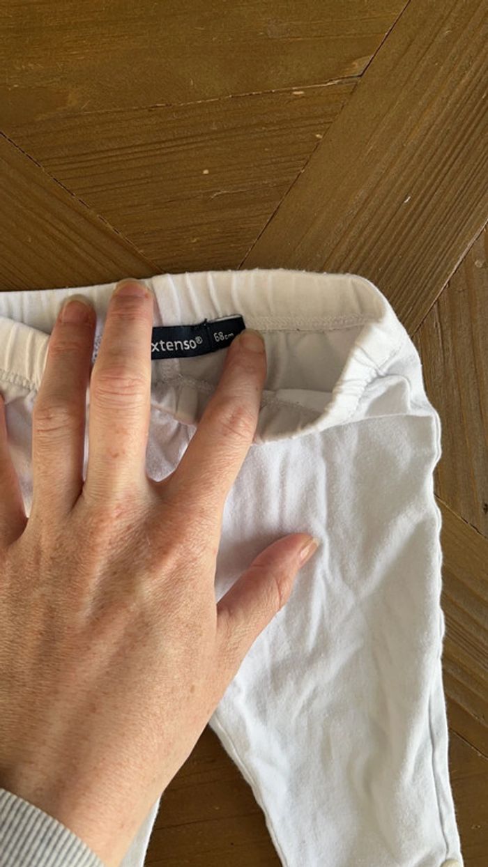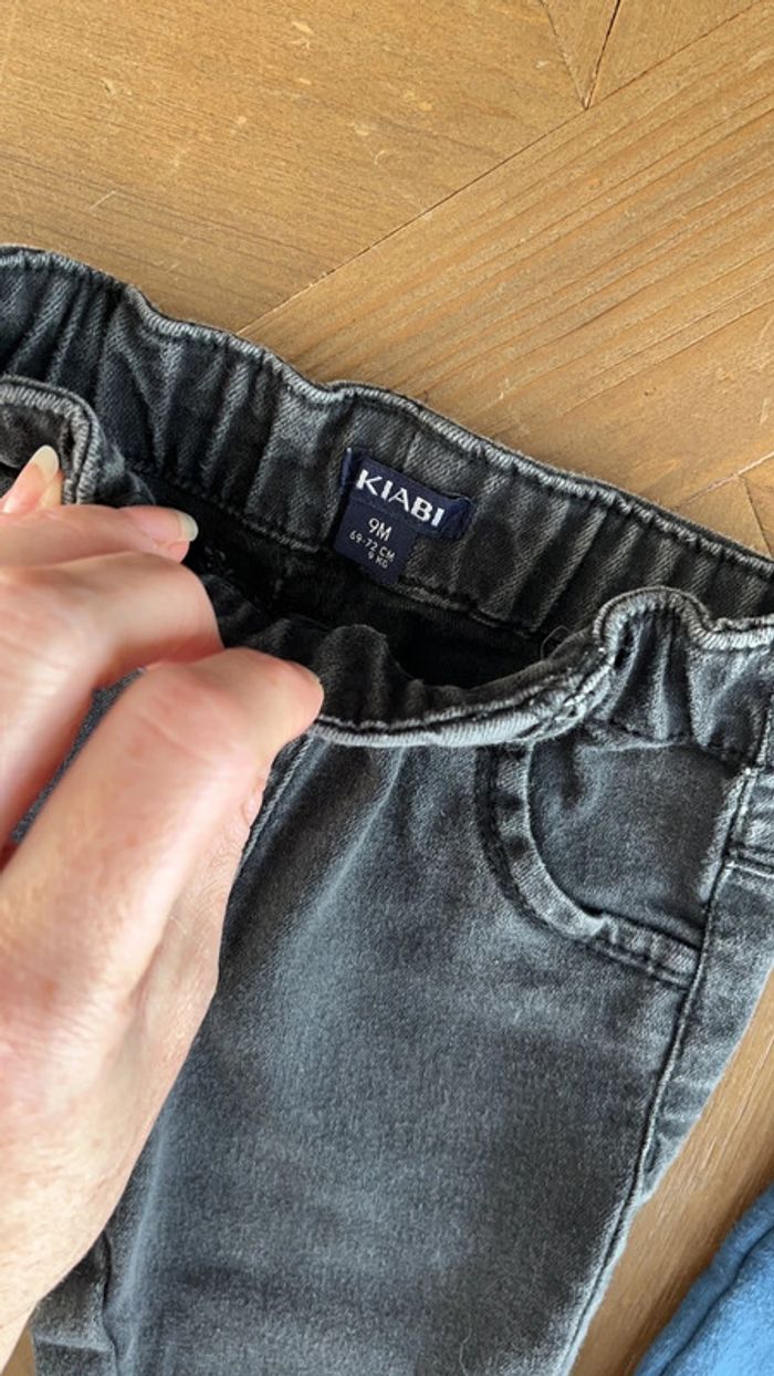 Lot de 3 pantalons fille : - Jean noir kiabi : porté une fois - jegging bleu : quelques peluches, élastiques qui se retourne à la taille - legging court blanc in extenso 68 cm #jp_01fille6mois #jp_01fille9mois