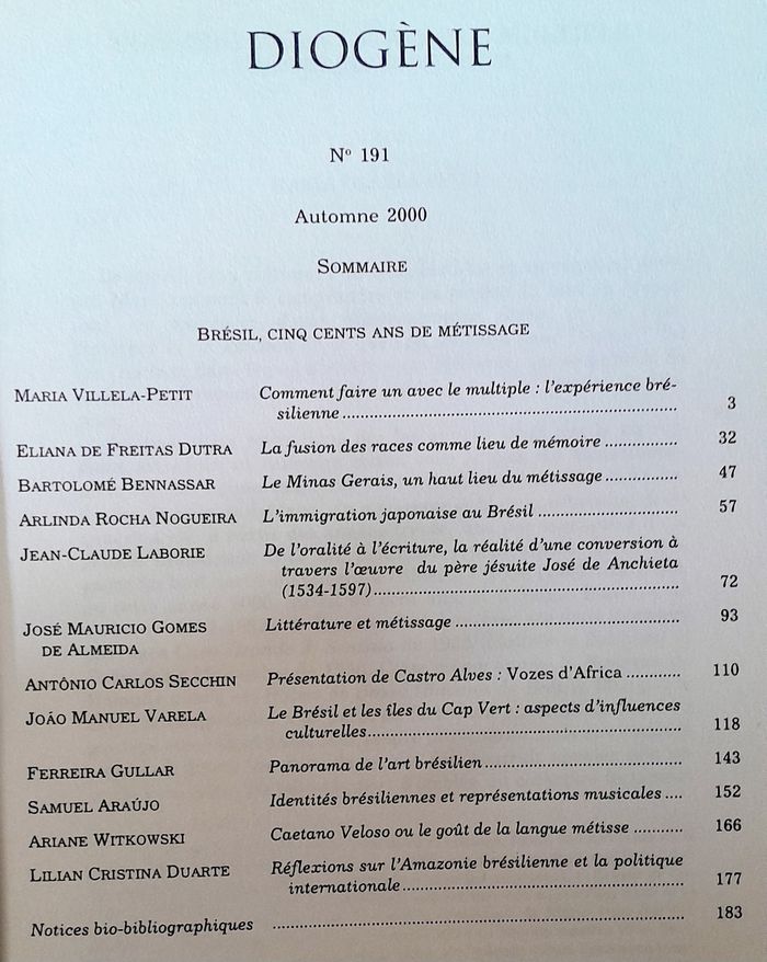 n°191 Brésil cinq cents ans de métissage, 186 pages 25x16,5 cm couverture défraichie intérieur frais