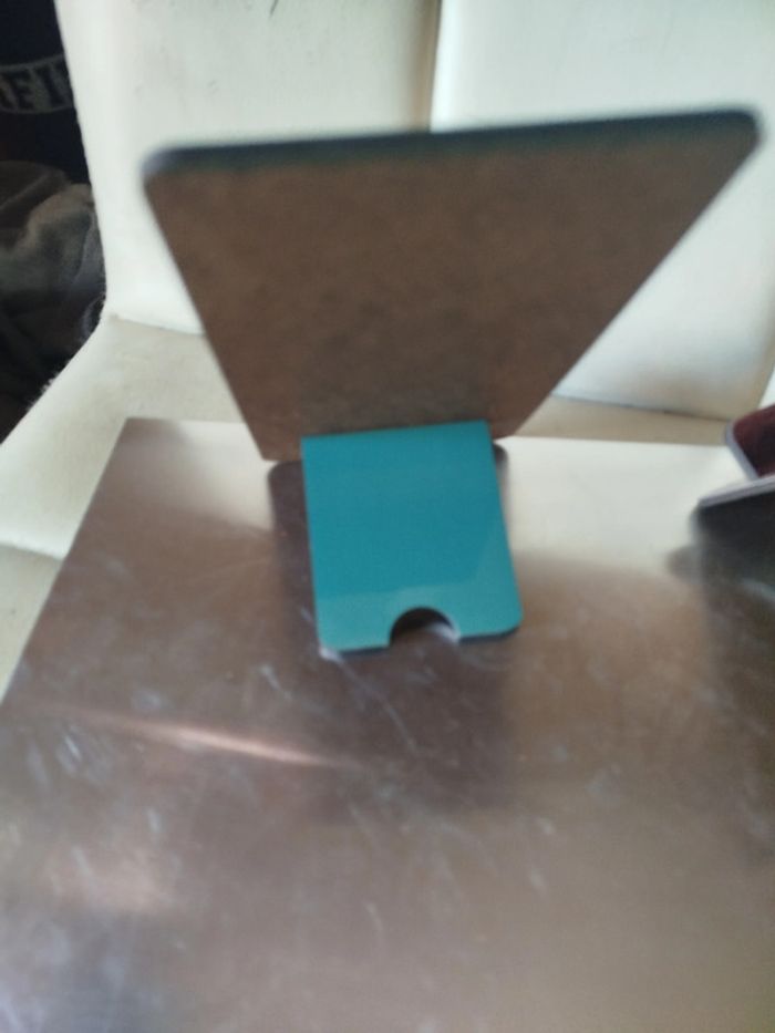 support pour smartphone en MDF. Universel, ce support est composé de deux plaques de MDF brillant. Les deux plaques viennent s'imbriquer pour un support auto-bloquant solide. Deux trous sont prévus pour faire passer un fil de chargement : il peut donc servir de station d’accueil pour smartphone. pour les tous les mobiles et petites tablettes ! • 17 x 9 x 0.3 cm et 9 x 9 x 0.3 cm pour la cale