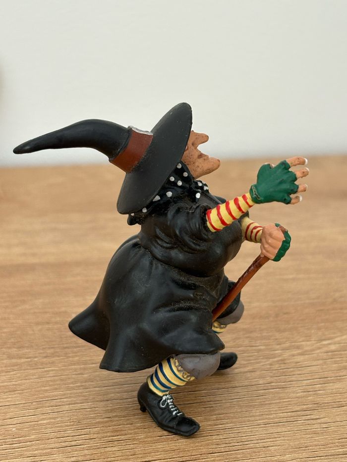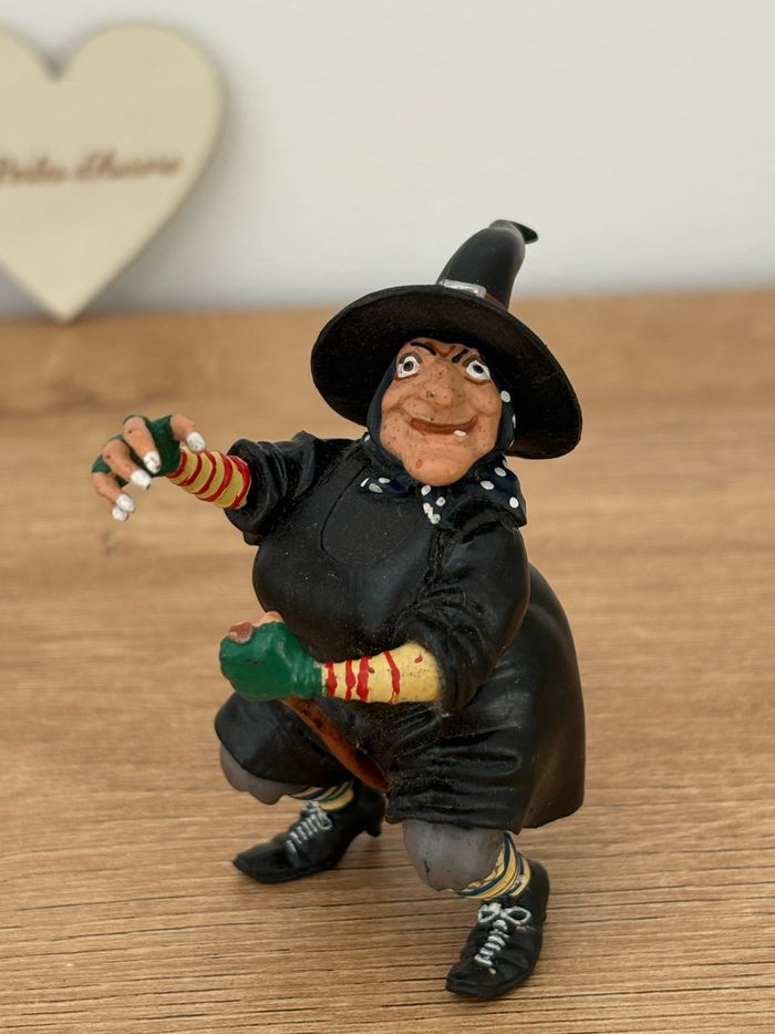 Figurine vintage Année 2000 Papo Sorcière sur son balai Hauteur : 8 cm Comme sur les photos