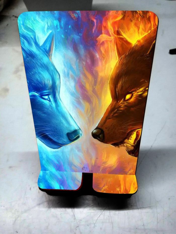 support pour smartphone en MDF. Universel, ce support est composé de deux plaques de MDF brillant. Les deux plaques viennent s'imbriquer pour un support auto-bloquant solide. Deux trous sont prévus pour faire passer un fil de chargement : il peut donc servir de station d’accueil pour smartphone. pour les tous les mobiles et petites tablettes ! • 17 x 9 x 0.3 cm et 9 x 9 x 0.3 cm pour la cale