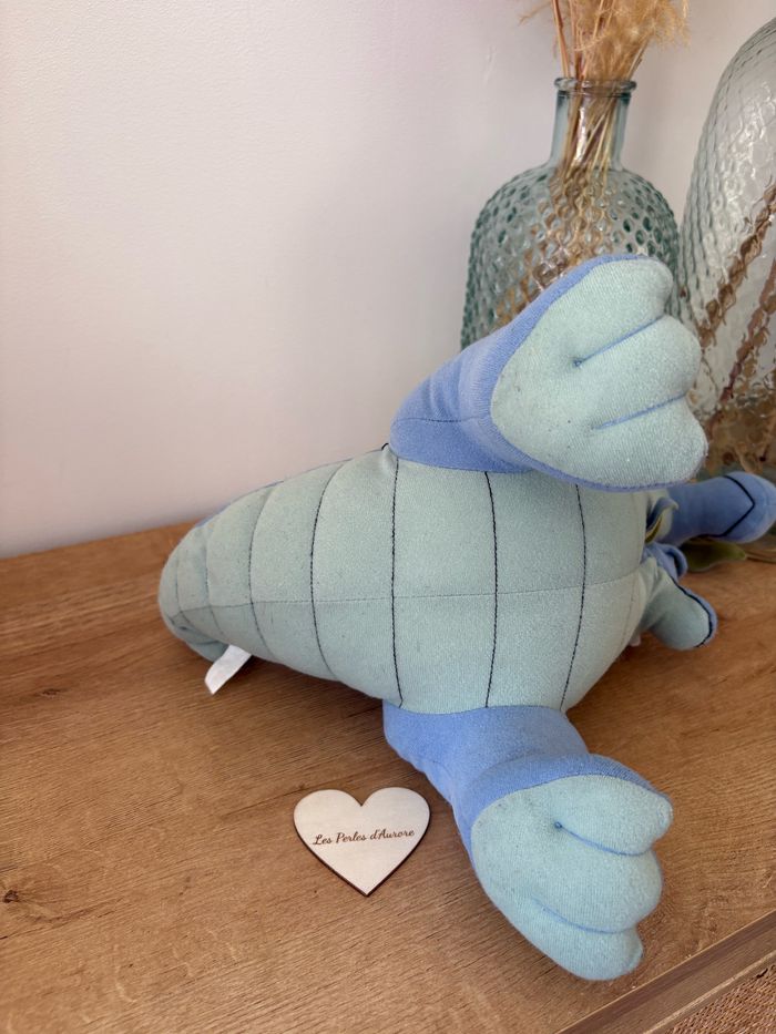 Peluche dragons bleu à 2 têtes Suki Excalibur l'épée magique En l'état Une mini tache devant