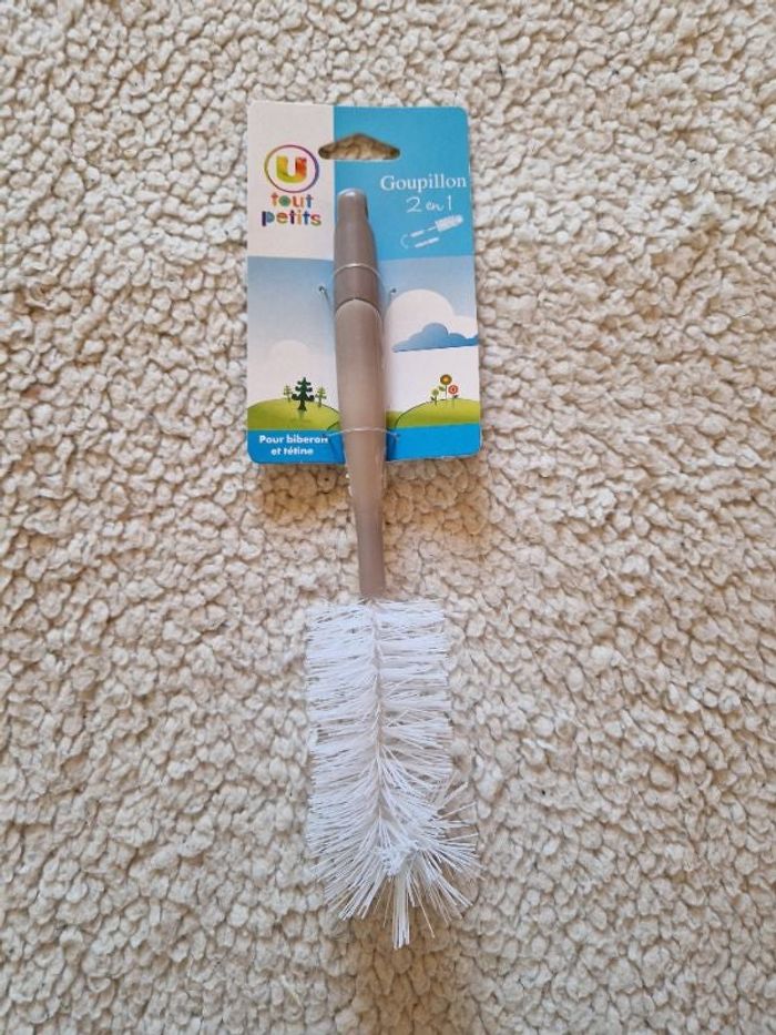 Goupillon pour biberon et tétine 2 en 1 : grand goupillon pour le biberon et petit goupillon (qui se défait en haut du manche) pour la tétine Neuf