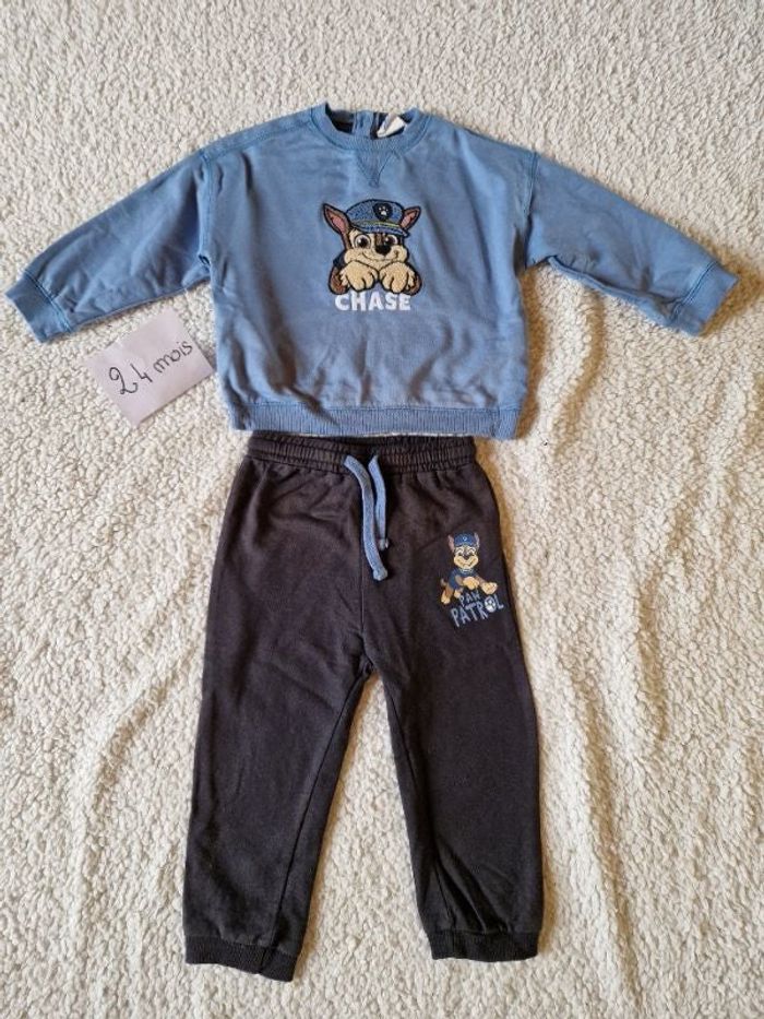 Ensemble pat patrouille / paw patrol 24 mois : - sweat bleu motif Chase - pantalon de jogging noir motif Chase Très bon état