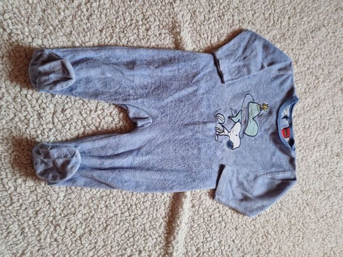 pyjama velours peanuts motifs snoopy 6 mois ouverture dos bleu clair bon état (couleur un peu passée et a perdu de sa douceur a force de lavage) réductions activées
