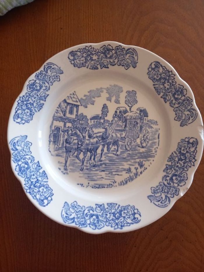 6 assiettes à dessert diamètre 18 cm. Un peu ebrechee