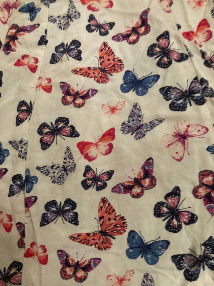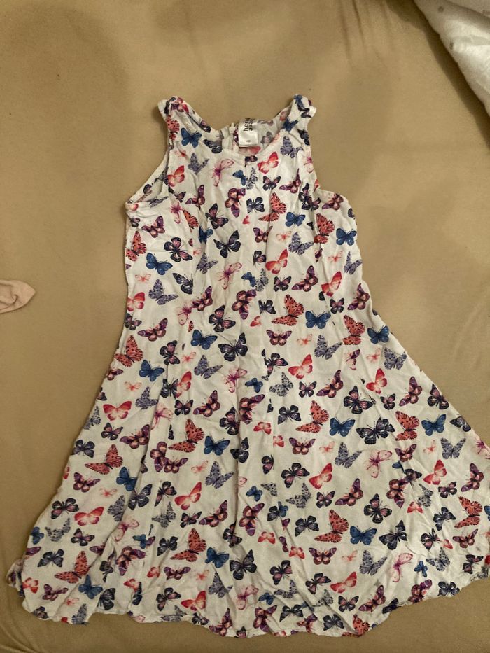 Robe en très bon état car très peu portée Sans trous ni taches Taille 10 /12 ans Fond blanc motifs papillons multicolores Fine fermeture invisible au dos Non négociable Envoi rapide et soigné