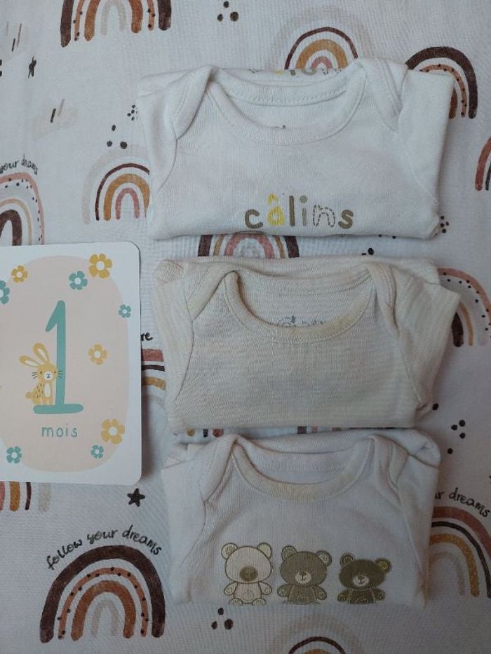 Lot de 3 Body - gemo - 1 mois - en bon état une petite tâche