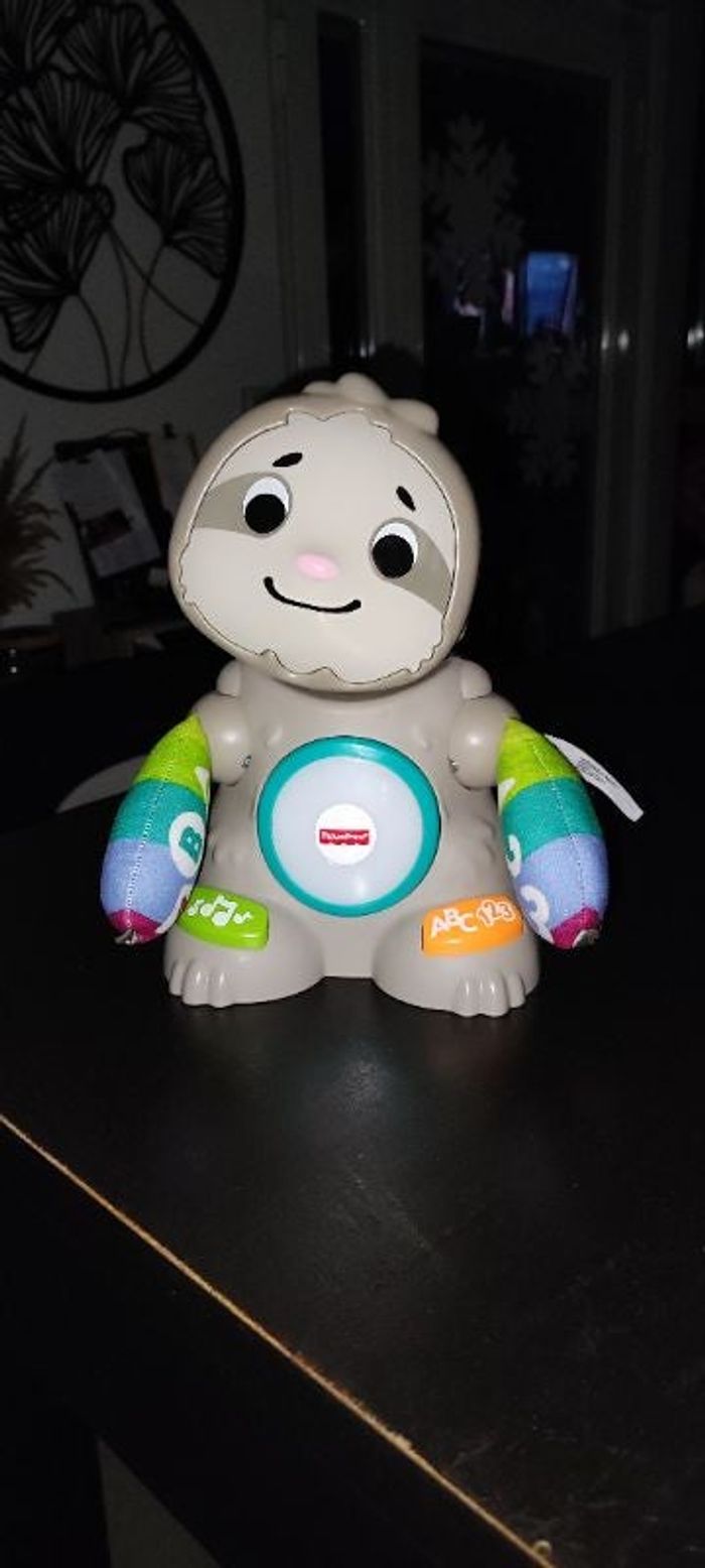 Bonjour, Je vends un jouet d'éveil "Mathieu le paresseux". Très bon état général, encore en vente à 71€ sur le site internet "Cdiscount". Description internet : "Dans la famille des Linkimals, voici le Paresseux sons et lumières pour encourager l’enfant à bouger par l’intermédiaire de jeux. Composé de 2 boutons d’activation, chacun déclenchera les mouvements du paresseux : taper dans ses mains et la tête qui bouge ainsi que des musiques ou des apprentissages. Ses bras sont en tissu pour apporter de la douceur et du contraste. Enfin, comme tous les Linkimals, il pourra interagir avec les autres membres de la gamme." 25€ À : Gujan-Mestras, possibilité de me déplacer jusqu'à Lanton, envoi possible. Possibilité de vous proposer les frais de port à 0,99€ ; n'hésitez pas à me contacter avant toute commande définitive. ⚠️ JE REFUSE LES PAIEMENTS PAYPAL OU PAYLIB, MERCI