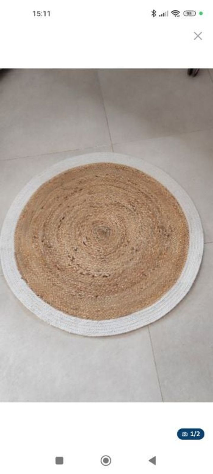 Bonjour, Je vends un tapis rond en jute associé sur le contour avec du coton tressé blanc Ø90cm, TBE. 20€, À : Gujan-Mestras, possibilité de me déplacer jusqu'à Lanton, envoi possible. Possibilité de vous proposer les frais de port à 0,99€ ; n'hésitez pas à me contacter avant toute commande définitive. ⚠️ JE REFUSE LES PAIEMENTS PAYPAL OU PAYLIB, MERCI