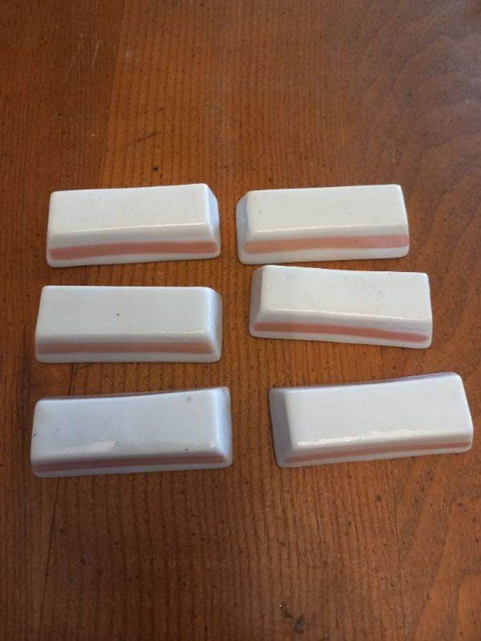Lot 6 porte couteaux blanc et rose 6x2,5 cm. Hauteur 1,5 cm.
