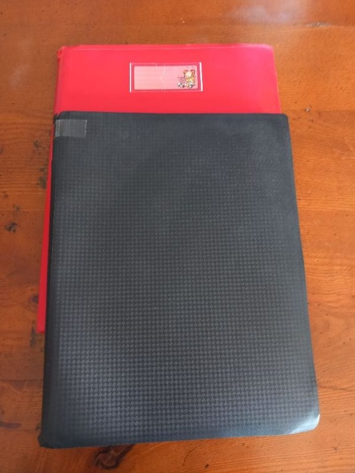 Lot 2 portes documents avec 80 pochettes A4. Le coin des pochettes et un peu abîmé
