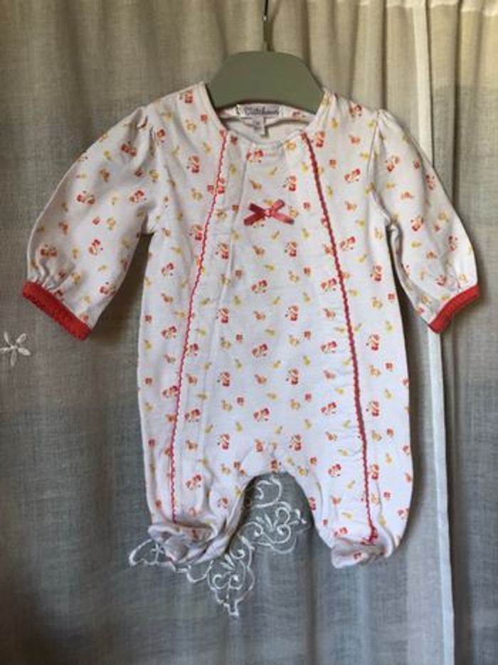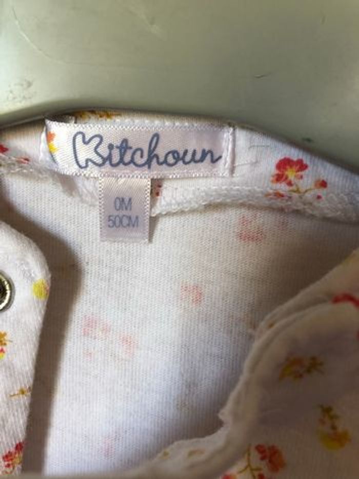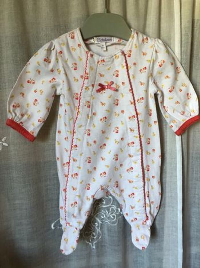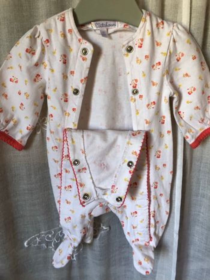 Pyjama d’été ouverture devant Coton jersey blanc imprimé fleuri saumon et jaune taille naissance 50 cm kitchoun