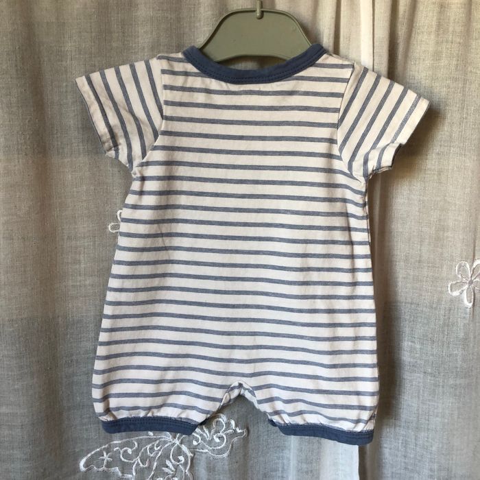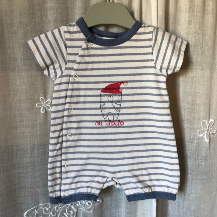 Pyjama combi short marin Coton jersey blanc rayé bleu Taille 3 mois 59 cm Tape à l’œil