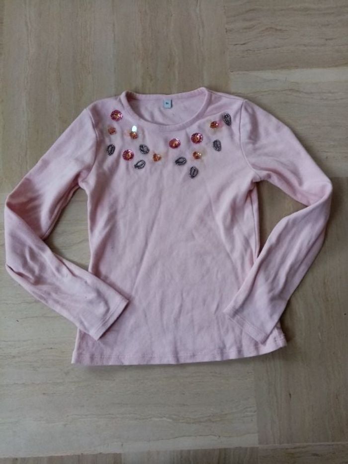 Haut avec fleurs brillantes et perles