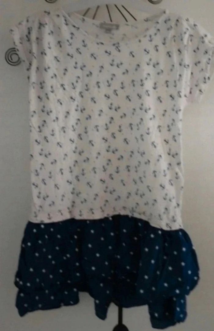 Robe manches courtes blanche et bleu imprimé ancres marine Miniman taille 8 ans - photo numéro 1