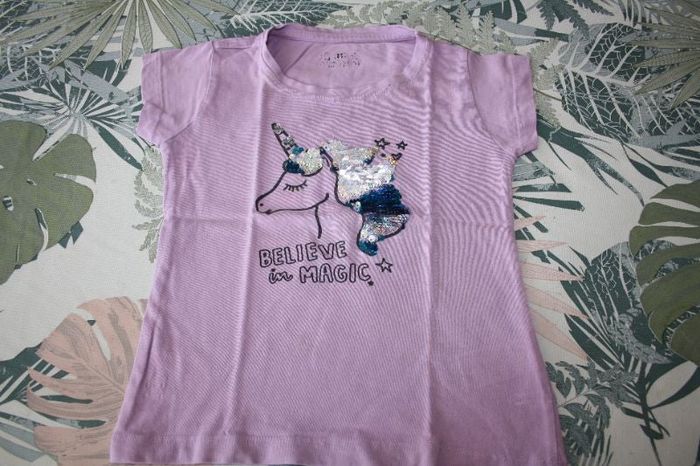 Tee-shirt mauve Licorne en 4 ans Motif en sequin