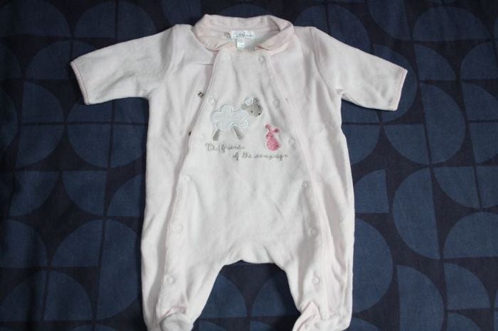 Dors-bien rose pale motif mouton et lapin en éponge en 1 mois de Kitchoun boutons pression sur le devant Petites taches sur le col