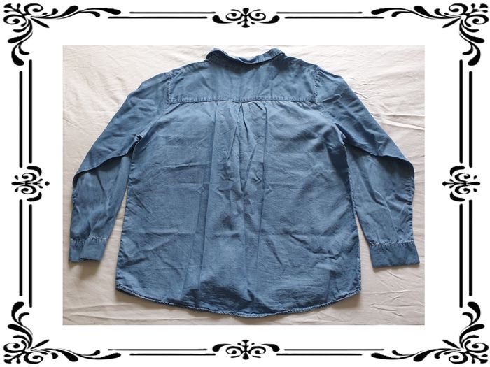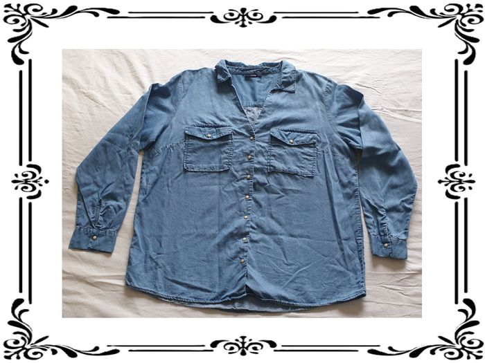Chemise taille 44. Chemise en jean bleue légère et fluide. Fermeture par boutons pressions. Une poche poitrine de chaque côté. Tissu non extensible. Largeur d’épaule à épaule : 43 cm Largeur sous les bras : 57 cm Largeur à la taille : 58 cm Hauteur du décolleté à partir de l’encolure : 20,5 cm Longueur totale : 69 cm Longueur des manches : 56 cm En très bon état. Kiabi. 3€. #vero38110vetementsfemme44