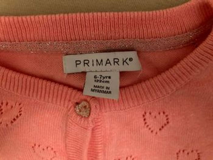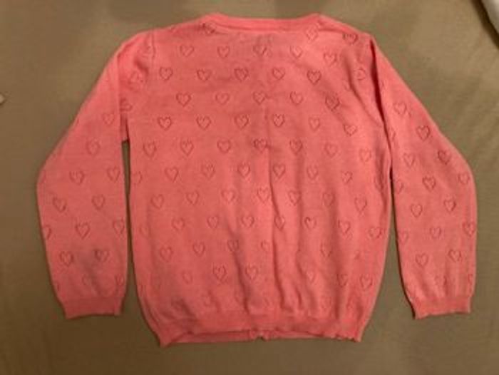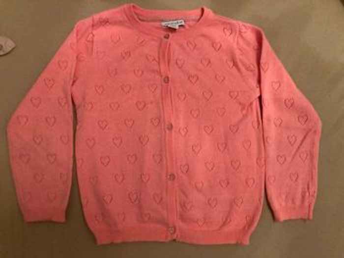 Gilet motifs cœur ajouré Coloris corail Taille 6/7 ans En très bon état sans trous ni taches Non négociable Envoi rapide et soigné