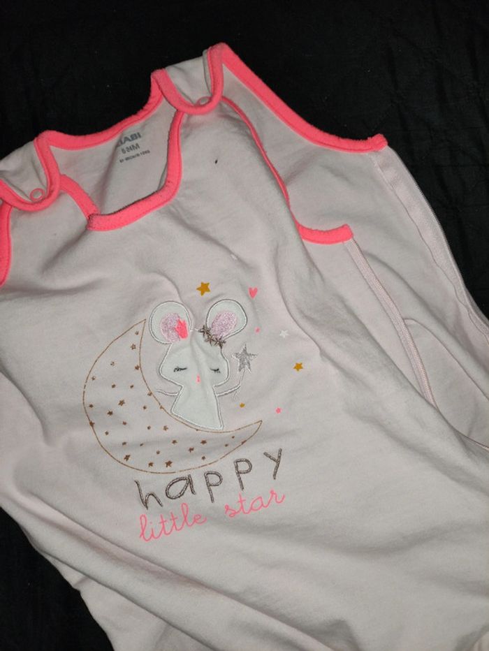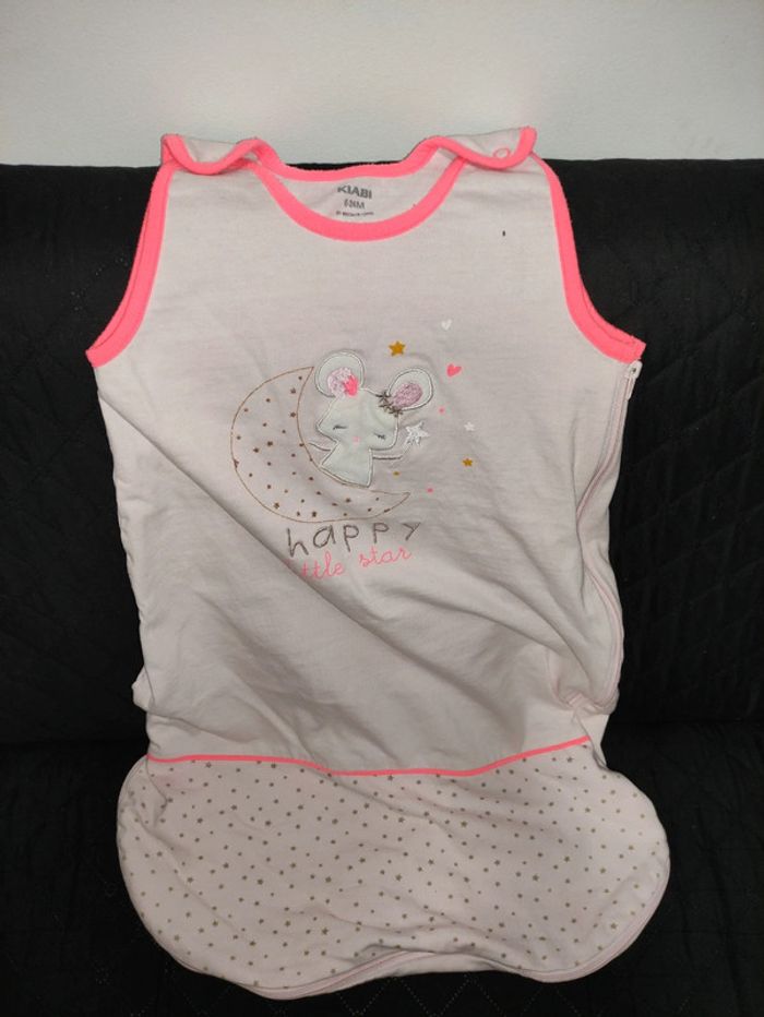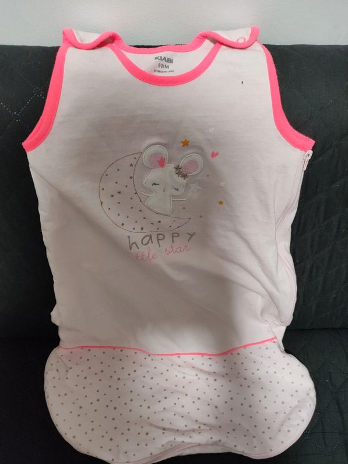 Gigoteuse taille 6/24 mois de marque Kiabi avec petite souris. Il y a des pressions à l'arrière pour modifier la taille. Elle est spécial été. En tissus très fin. ( Pas de polaire) En vente tel que sur mes photos. Envoi rapide et soigné. Pas de Vinted Go.