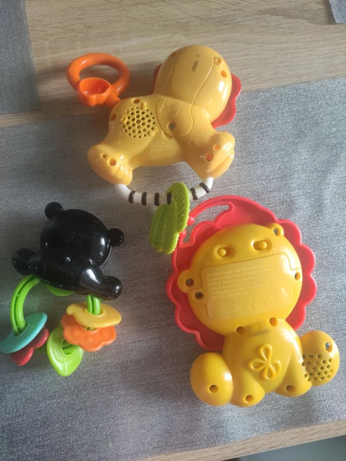 Lot de 3 jouets. Les deux jouets et Lion sont musicaux dont un de marque vtech. Et il y a un hochet panda de marque Fisher-Price. En vente tel que sur mes photos. Envoi rapide et soigné. Pas de vinted go.