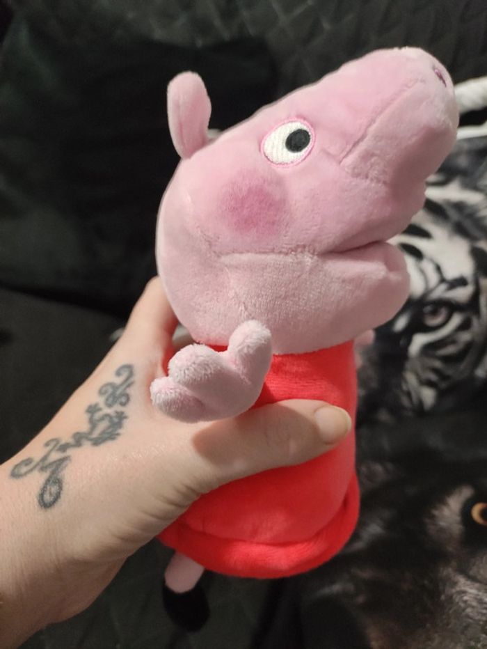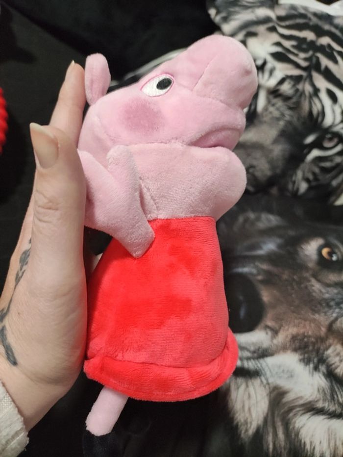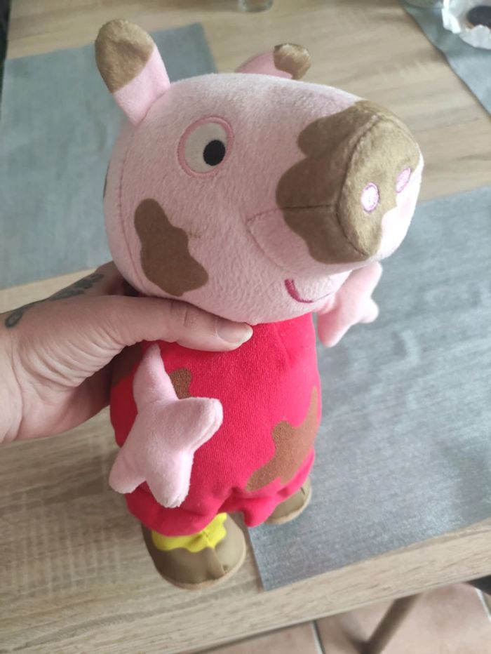 Lot Peppa pig. Une est interactive et saute ( dans les flaques de boueuses) puis la deuxième est une jolie peluche Peppa Pig du dessin animé. Pour la taille vous pouvez voir par rapport à ma main. En vente tel que sur mes photos. Envoi rapide et soigné. Pas de vinted go.