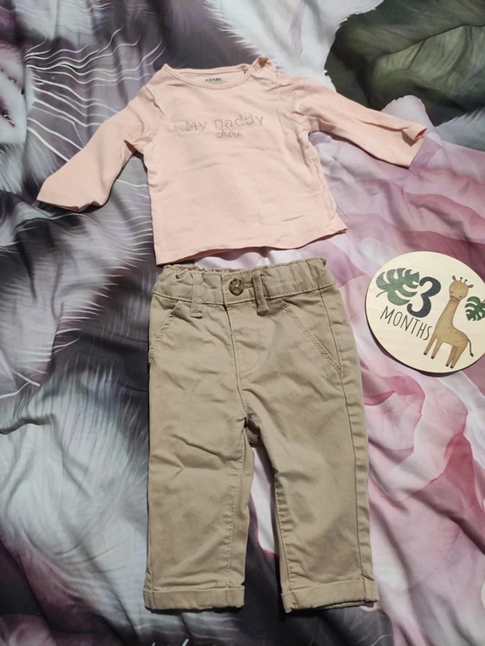 Ensemble haut mon papa chéri et pantalon 3 mois - photo numéro 1