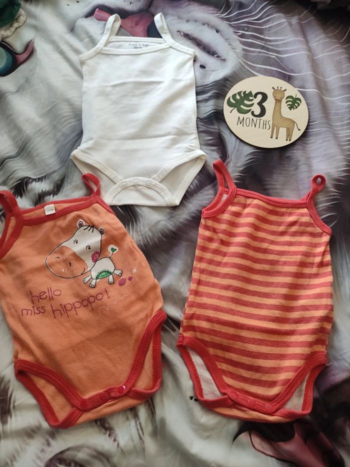 3 bodies bretelle, mixte, 3 mois - photo numéro 3