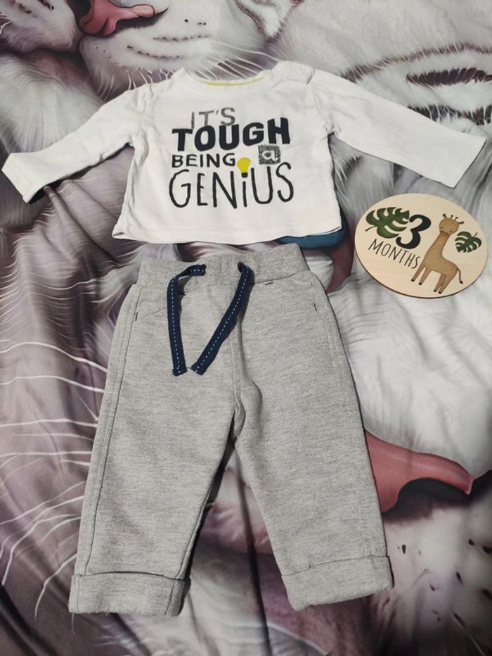 Ensemble garçon, créé par mes soins, qui se compose d'un t-shirt manches longues et d'un pantalon jogging. De différentes marques. Taille 3 mois. 🐞Pour retrouver mes vêtements de même taille cliquez ici: #LylooLys76_vêtementsBébé_garçon. Pensez à rassembler vos achats pour minimiser les frais de port. 😉 En vente tel que sur mes photos. 📦Envoi rapide et soigné.
