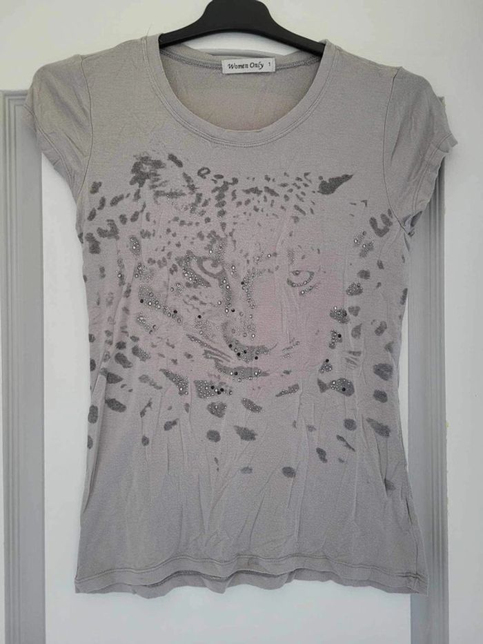 Tee-shirt gris motif panthère