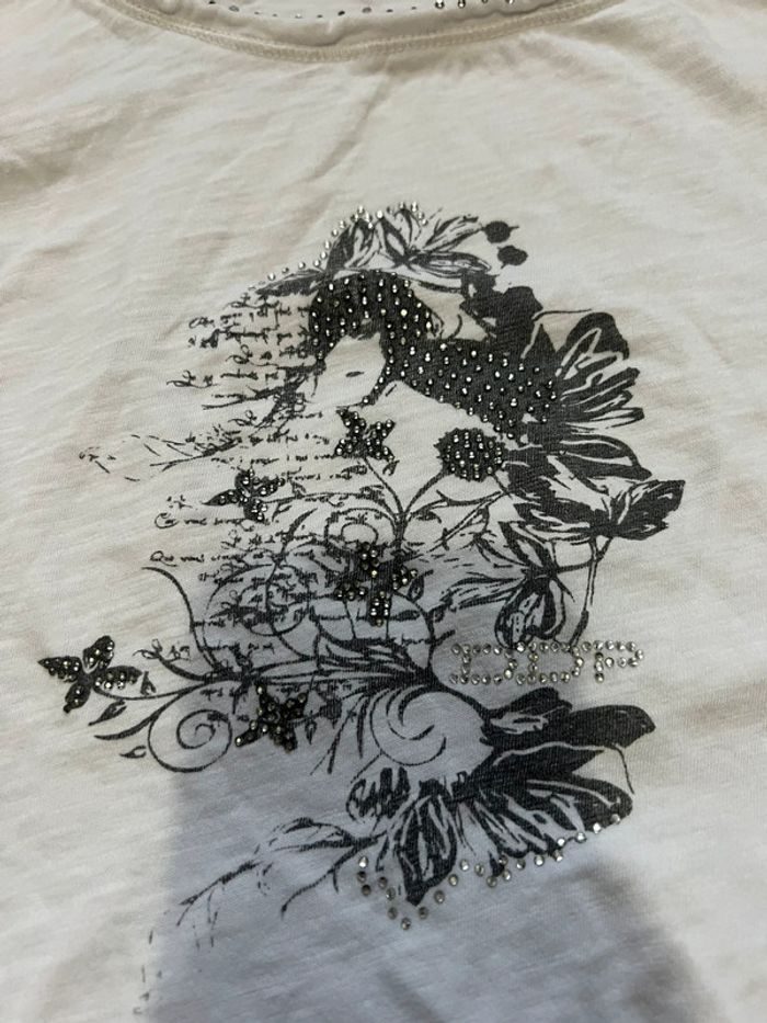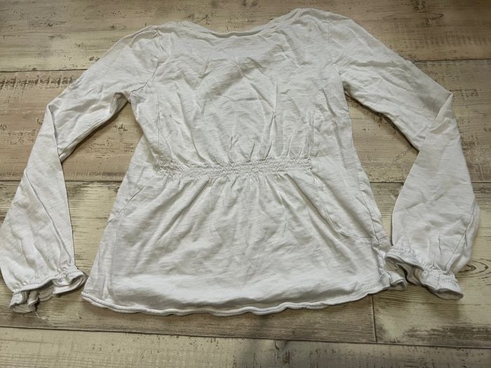 T-shirt manches longues blanc possibilité de remonter les manches ceintré à l’arrière