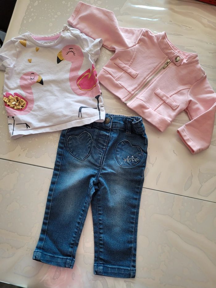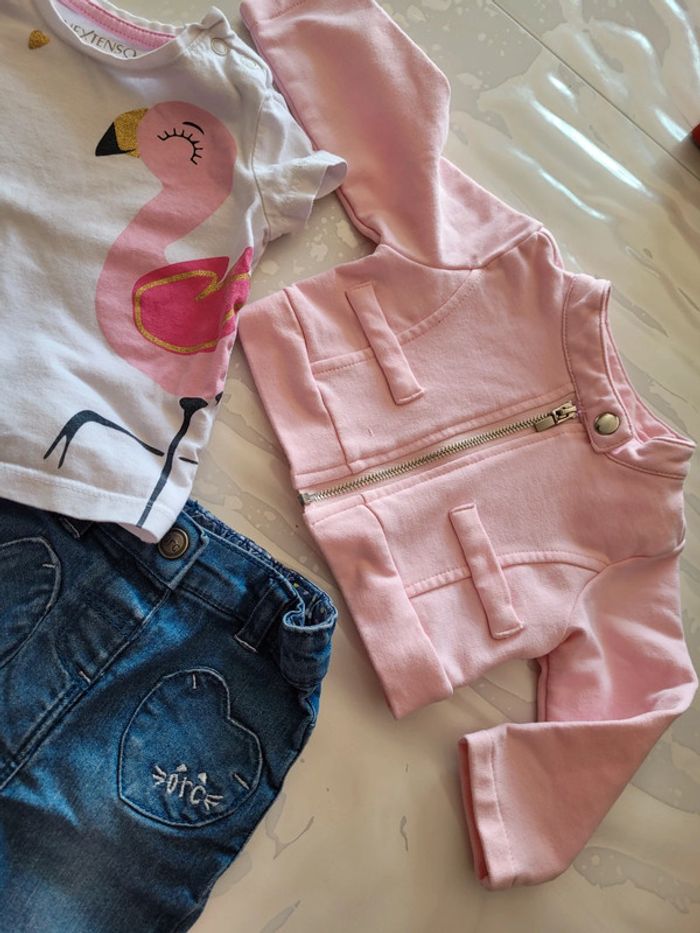 Ensemble jeans orchestra , Tee-shirts in extenso et veste courte rose 6 mois