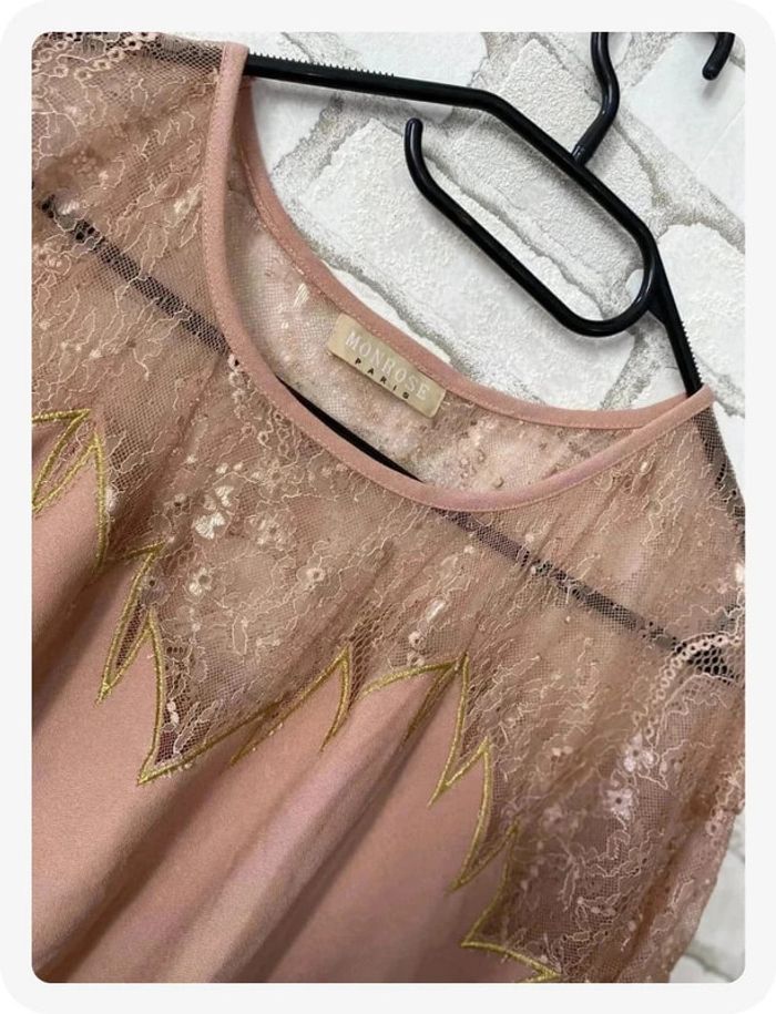 Neuve Taille 38/40 - M/L Dentelle en haut + manches #galoupette88femmeL #galoupette88femmeM #neuf #taille40 #taille38 #vieuxrose #monrose #dentelle #robe #robe38 #robe40