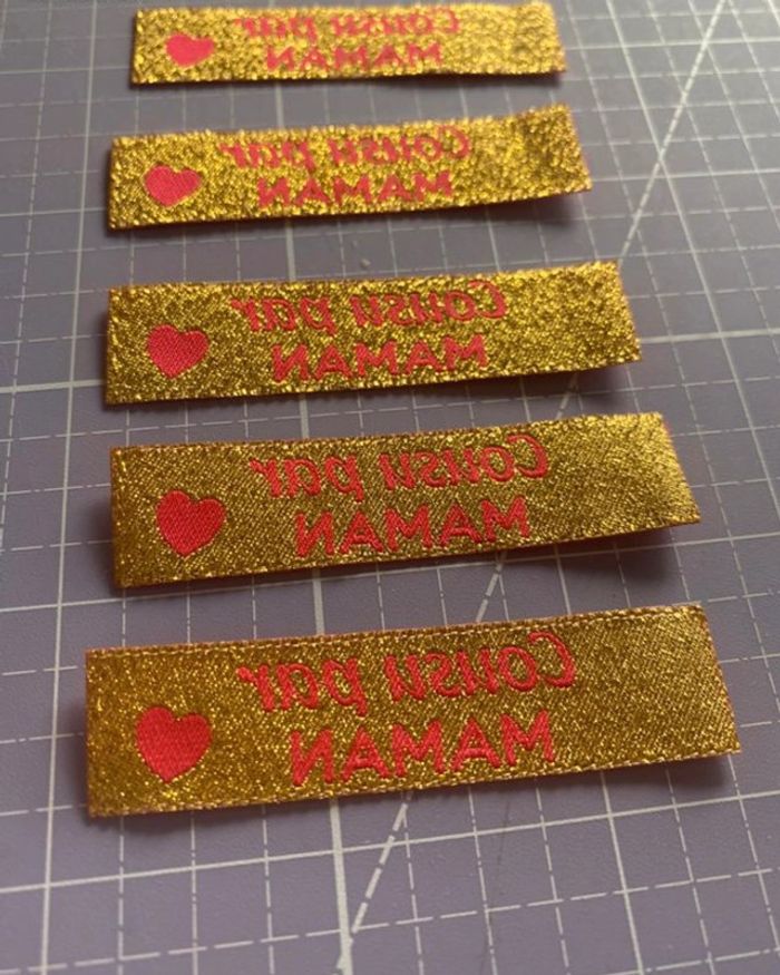 Lot de 5 étiquettes à coudre rose et doré - photo numéro 1