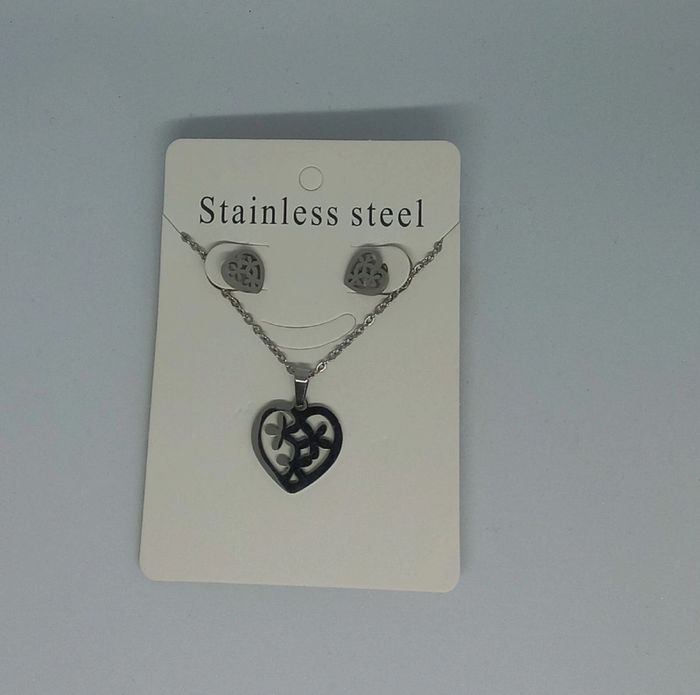 Ensemble Colliers boucles oreilles acier inoxydable femme adolescente coeur