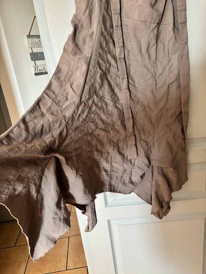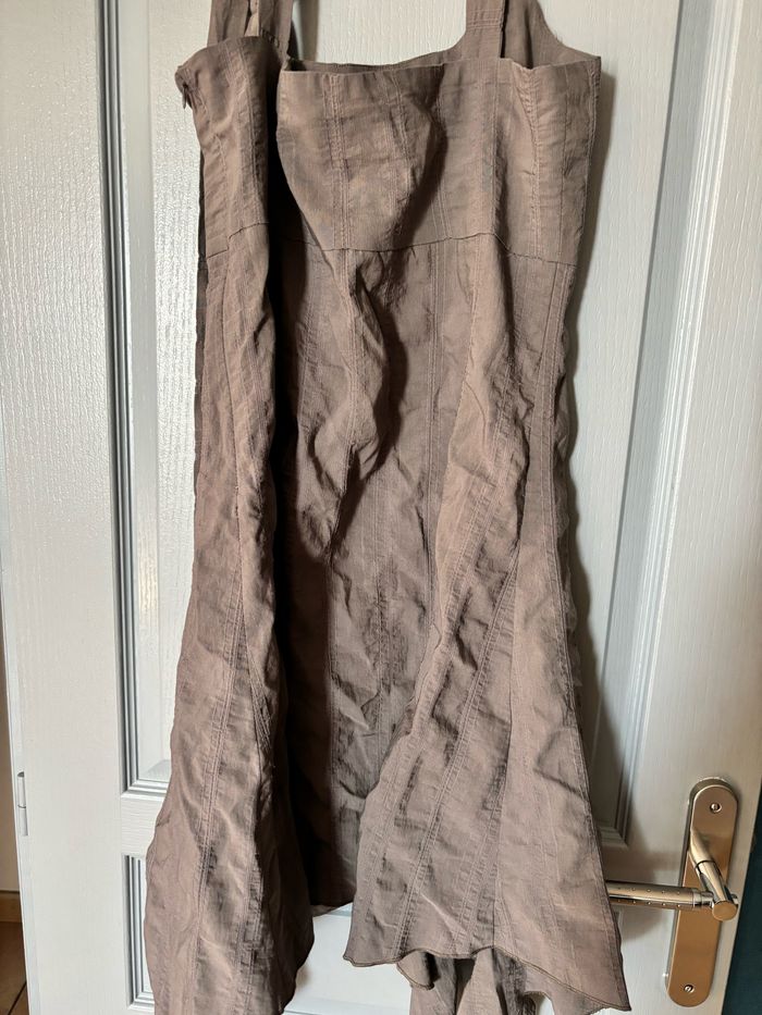 Robe environ longueur genou très bon état, fermeture sur le côté et bretelles réglables marque Formul marron taille 44