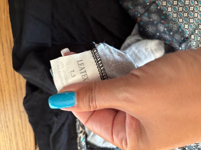 Haut à motifs devant et uni noir derrière DPM bon état taille 3