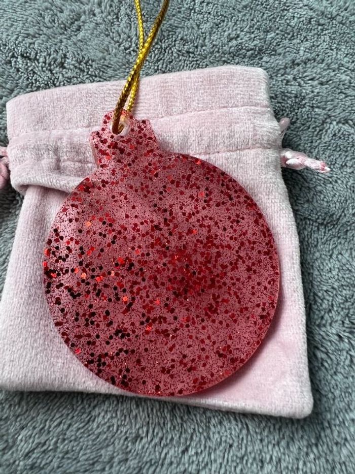 vends boule de noel en résine époxy de couleur rouge paillettes